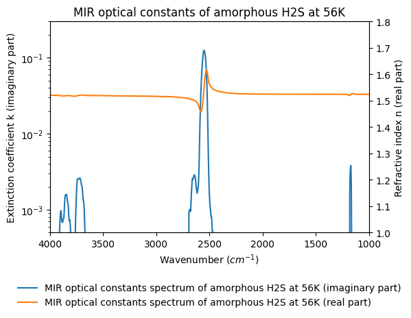 - MIR optical constants of amorphous H2S from sample deposited and measured at 56K