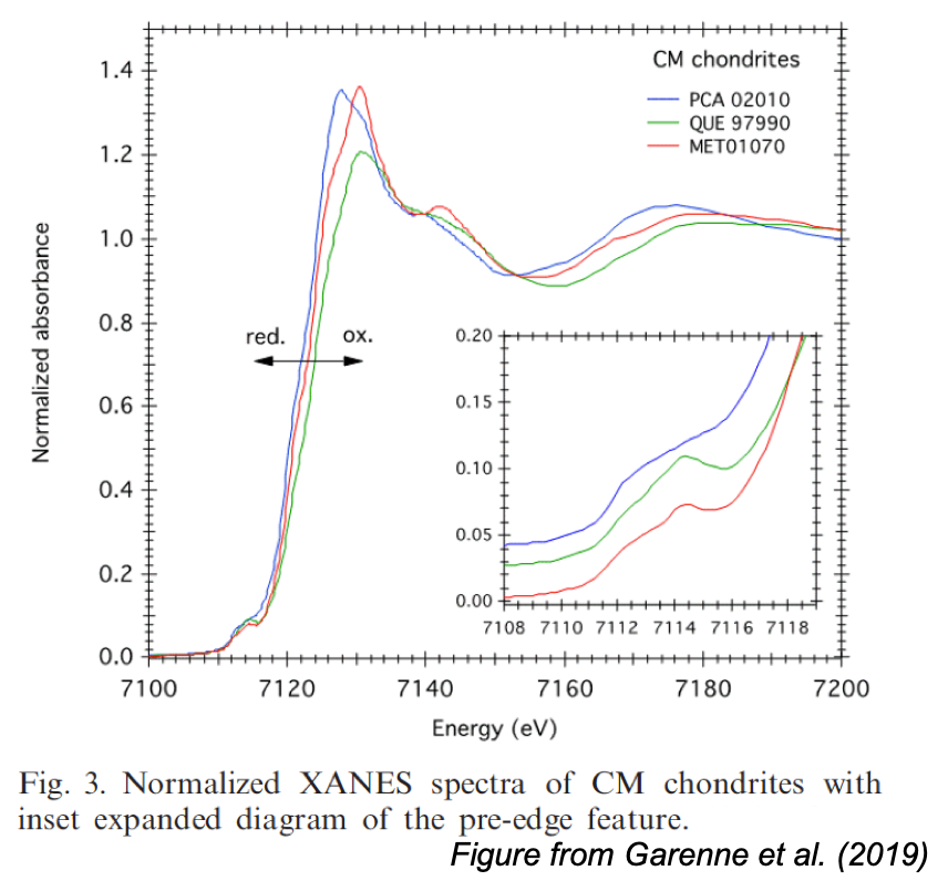 - Garenne, Alexandre; Bonal, Lydie; Beck, Pierre; Proux, Olivier (2013): Fe K edge XAS absorbance of bulk CM carbonaceous chondrites. SSHADE/GhoSST+FAME (OSUG Data Center). Dataset/Spectral Data. https://doi.org/10.26302/SSHADE/EXPERIMENT_LB_20191211_001