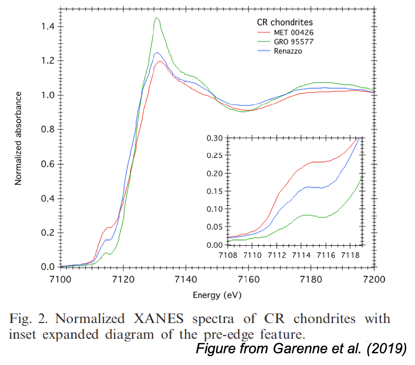 - Garenne, Alexandre; Bonal, Lydie; Beck, Pierre; Proux, Olivier (2013): Fe K edge XAS absorbance of bulk CR carbonaceous chondrites. SSHADE/GhoSST+FAME (OSUG Data Center). Dataset/Spectral Data. https://doi.org/10.26302/SSHADE/EXPERIMENT_LB_20191211_003