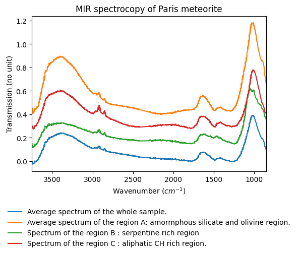 - Hyper-spectrale MIR spectroscopy of Paris meteorite in tranmission (sample crushed in a diamand compression cell)
