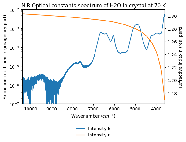 - Grundy, Will; Schmitt, Bernard (1997): NIR Optical constants spectrum of H2O Ih crystal and H2O liquid from 20 to 293 K. SSHADE/GhoSST (OSUG Data Center). Dataset/Spectral Data. https://doi.org/10.26302/SSHADE/EXPERIMENT_BS_20120924_011