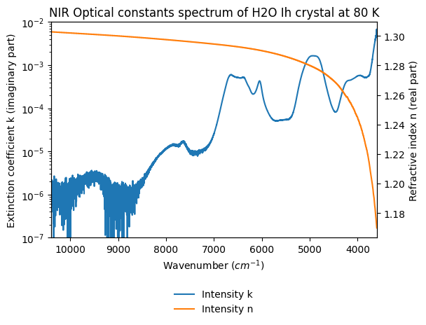 - Grundy, Will; Schmitt, Bernard (1997): NIR Optical constants spectrum of H2O Ih crystal and H2O liquid from 20 to 293 K. SSHADE/GhoSST (OSUG Data Center). Dataset/Spectral Data. https://doi.org/10.26302/SSHADE/EXPERIMENT_BS_20120924_011