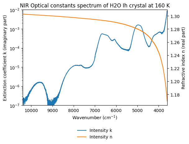 - Grundy, Will; Schmitt, Bernard (1997): NIR Optical constants spectrum of H2O Ih crystal and H2O liquid from 20 to 293 K. SSHADE/GhoSST (OSUG Data Center). Dataset/Spectral Data. https://doi.org/10.26302/SSHADE/EXPERIMENT_BS_20120924_011