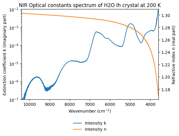 - Grundy, Will; Schmitt, Bernard (1997): NIR Optical constants spectrum of H2O Ih crystal and H2O liquid from 20 to 293 K. SSHADE/GhoSST (OSUG Data Center). Dataset/Spectral Data. https://doi.org/10.26302/SSHADE/EXPERIMENT_BS_20120924_011
