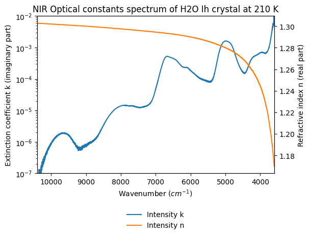 - Grundy, Will; Schmitt, Bernard (1997): NIR Optical constants spectrum of H2O Ih crystal and H2O liquid from 20 to 293 K. SSHADE/GhoSST (OSUG Data Center). Dataset/Spectral Data. https://doi.org/10.26302/SSHADE/EXPERIMENT_BS_20120924_011