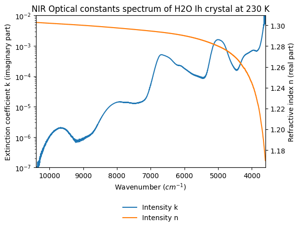 - Grundy, Will; Schmitt, Bernard (1997): NIR Optical constants spectrum of H2O Ih crystal and H2O liquid from 20 to 293 K. SSHADE/GhoSST (OSUG Data Center). Dataset/Spectral Data. https://doi.org/10.26302/SSHADE/EXPERIMENT_BS_20120924_011