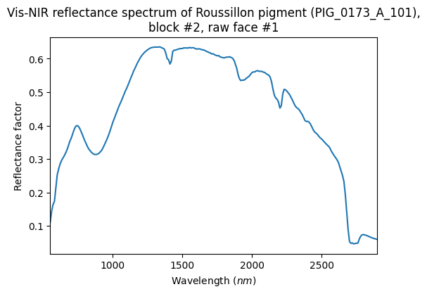 Vis-NIR reflectance spectrum of Roussillon pigment (PIG_0173_A_101), block #2, raw face #1