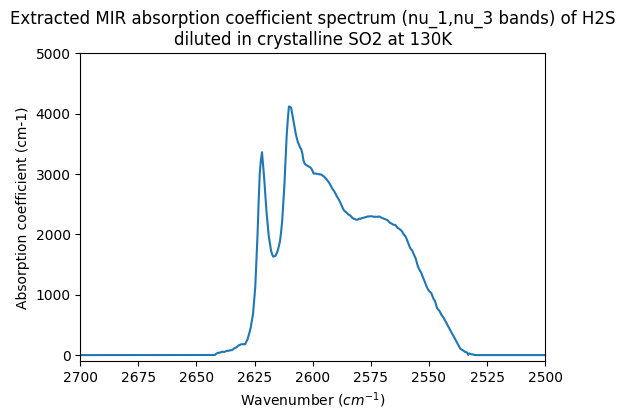 - Schmitt, Bernard (1991): MIR absorption coefficient spectra of H2S (nu_1,nu_3 bands) in 3 different phases (amorphous, III, II) and diluted in SO2 ice. SSHADE/GhoSST (OSUG Data Center). Dataset/Spectral Data. https://doi.org/10.26302/SSHADE/EXPERIMENT_BS_20200202_001