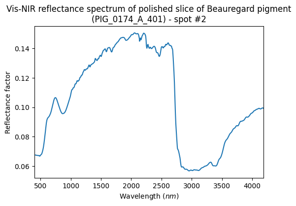 - Schmitt, Bernard; Chalmin-Aljanabi, Emilie; Chassin de Kergommeaux, Aurélie (2019): Vis-NIR reflectance spectra of Beauregard pigments (PIG_0174_A): raw blocks, powders, polished plot and painted matter. SSHADE/PIG (OSUG Data Center). Dataset/Spectral Data. https://doi.org/10.26302/SSHADE/EXPERIMENT_BS_20200812_100