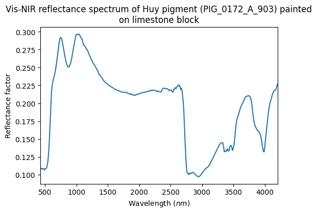 Vis-NIR reflectance spectrum of Huy pigment (PIG_0172_A_903) painted on limestone block