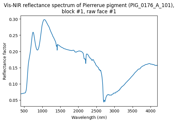 Vis-NIR reflectance spectrum of Pierrerue pigment (PIG_0176_A_101), block #1, raw face #1