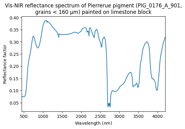 - Schmitt, Bernard; Chalmin-Aljanabi, Emilie; Chassin de Kergommeaux, Aurélie (2019): Vis-NIR reflectance spectra of Pierrerue pigments (PIG_0176_A): raw blocks, powders, plots and painted matter. SSHADE/PIG (OSUG Data Center). Dataset/Spectral Data. https://doi.org/10.26302/SSHADE/EXPERIMENT_BS_20200814_100