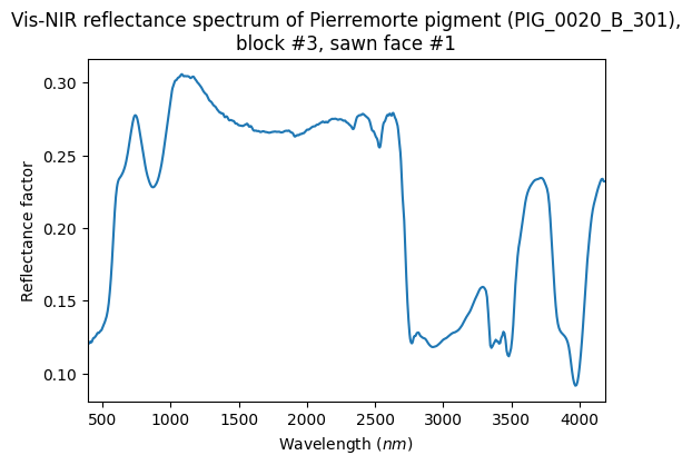 Vis-NIR reflectance spectrum of Pierremorte pigment (PIG_0020_B_301), block #3, sawn face #1