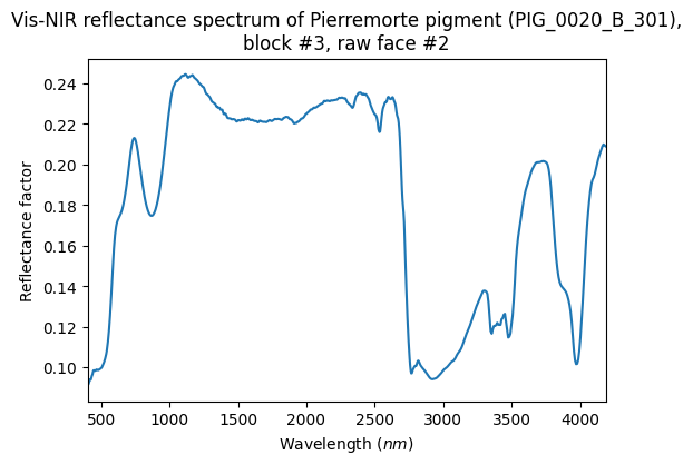 Vis-NIR reflectance spectrum of Pierremorte pigment (PIG_0020_B_301), block #3, raw face #2