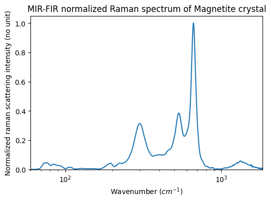 MIR-FIR normalized Raman spectrum of Magnetite crystal