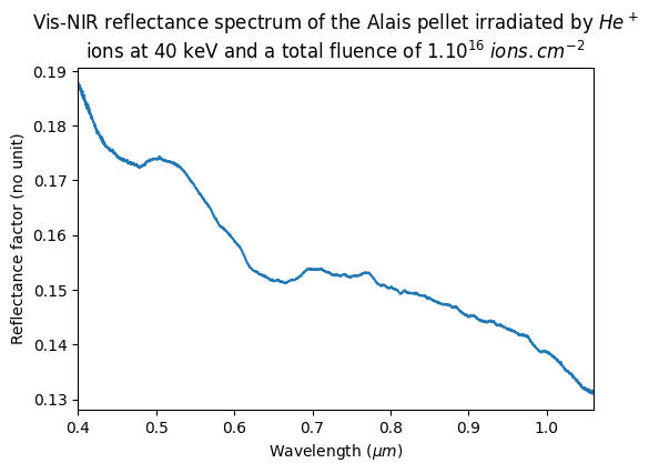 Vis-NIR reflectance spectrum of the Alais pellet irradiated by He⁺ ions at 40 keV and a total fluence of 1.1016 ions.cm-2