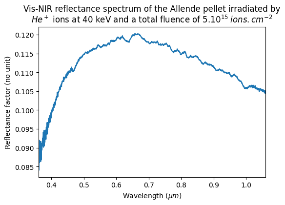 Vis-NIR reflectance spectrum of the Allende pellet irradiated by He⁺ ions at 40 keV and a total fluence of 5.1015 ions.cm-2
