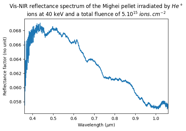 Vis-NIR reflectance spectrum of the Mighei pellet irradiated by He⁺ ions at 40 keV and a total fluence of 5.1015 ions.cm-2