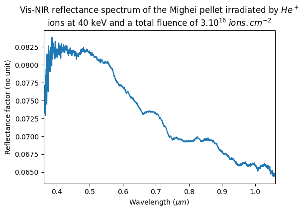 Vis-NIR reflectance spectrum of the Mighei pellet irradiated by He⁺ ions at 40 keV and a total fluence of 3.1016 ions.cm-2