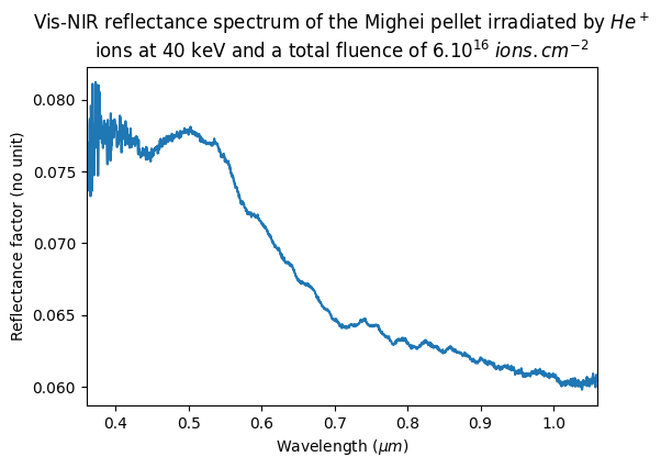 - Lantz, Cateline (2015): Ion irradiation ($He^+$) of a Mighei meteorite pellet probed by Vis-NIR spectroscopy. SSHADE/DAYSY (OSUG Data Center). Dataset/Spectral Data. https://doi.org/10.26302/SSHADE/EXPERIMENT_CL_20181201_04