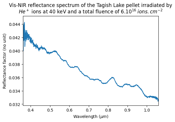 Vis-NIR reflectance spectrum of the Tagish Lake pellet irradiated by He⁺ ions at 40 keV and a total fluence of 6.1016 ions.cm-2