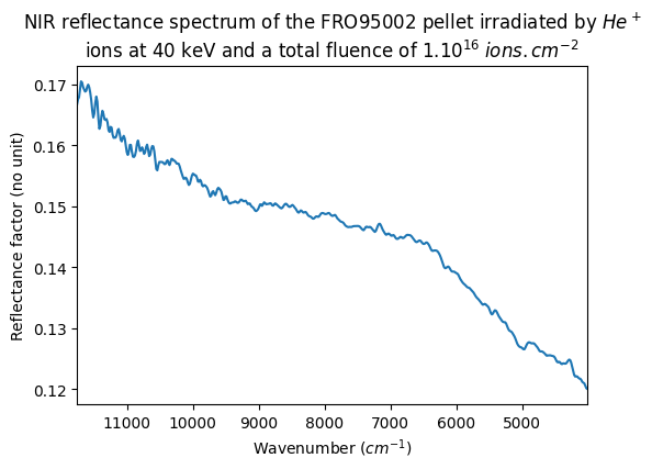 NIR reflectance spectrum of the FRO95002 pellet irradiated by He⁺ ions at 40 keV and a total fluence of 1.1016 ions.cm-2