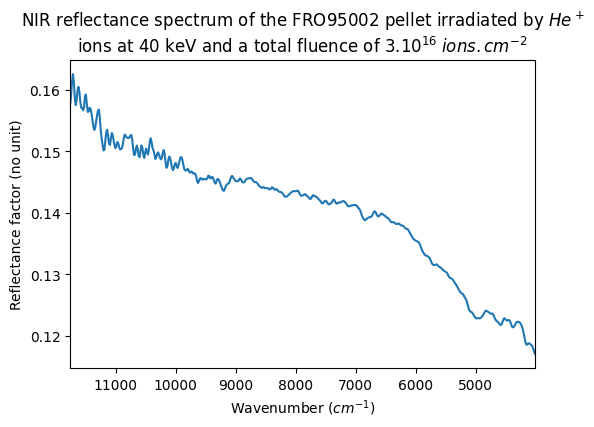 NIR reflectance spectrum of the FRO95002 pellet irradiated by He⁺ ions at 40 keV and a total fluence of 3.1016 ions.cm-2
