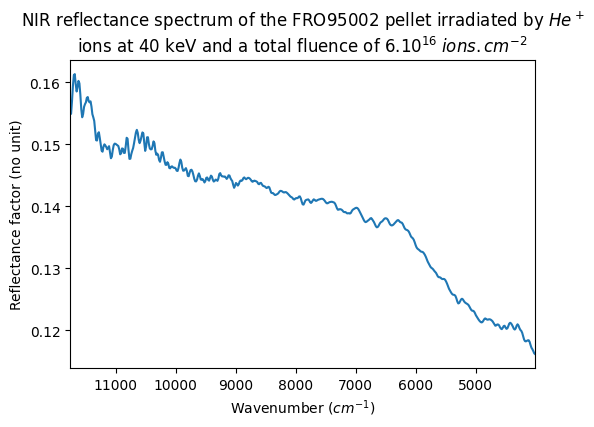 - Lantz, Cateline (2015): Ion irradiation ($He^+$) of a FRO95002 meteorite pellet probed by NIR spectroscopy. SSHADE/DAYSY (OSUG Data Center). Dataset/Spectral Data. https://doi.org/10.26302/SSHADE/EXPERIMENT_CL_20181202_01