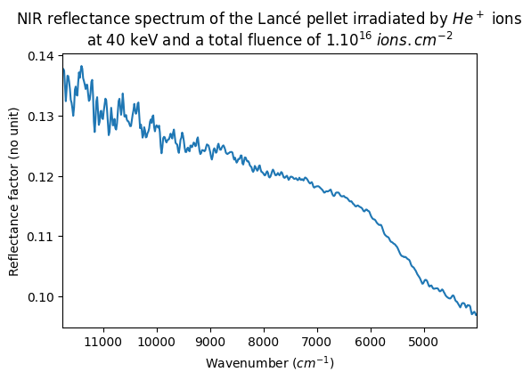 NIR reflectance spectrum of the Lancé pellet irradiated by He⁺ ions at 40 keV and a total fluence of 1.1016 ions.cm-2