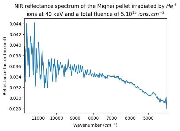 NIR reflectance spectrum of the Mighei pellet irradiated by He⁺ ions at 40 keV and a total fluence of 5.1015 ions.cm-2