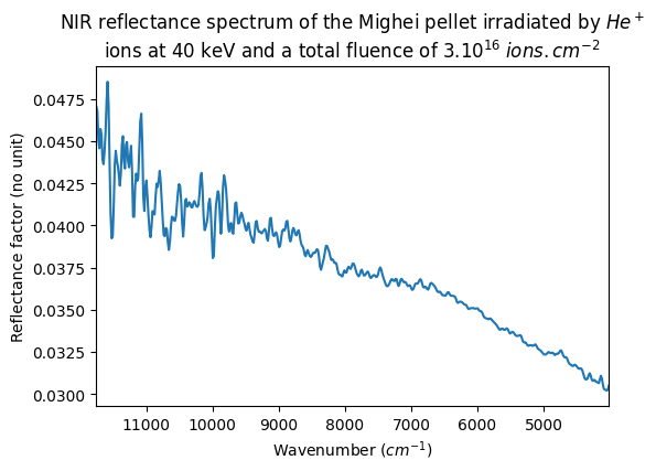 - Lantz, Cateline (2015): Ion irradiation ($He^+$) of a Mighei meteorite pellet probed by NIR spectroscopy. SSHADE/DAYSY (OSUG Data Center). Dataset/Spectral Data. https://doi.org/10.26302/SSHADE/EXPERIMENT_CL_20181202_03
