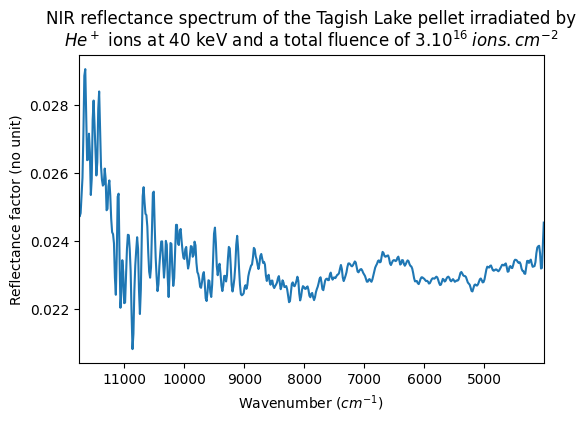NIR reflectance spectrum of the Tagish Lake pellet irradiated by He⁺ ions at 40 keV and a total fluence of 3.1016 ions.cm-2