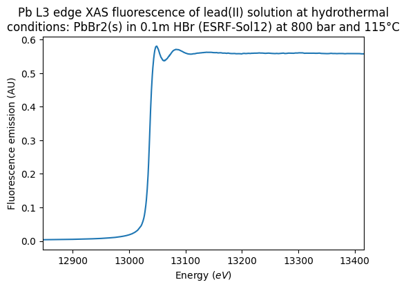 Pb L3 edge XAS fluorescence of lead(II) solution at hydrothermal conditions: PbBr2(s) in 0.1m HBr (ESRF-Sol12) at 800 bar and 115°C