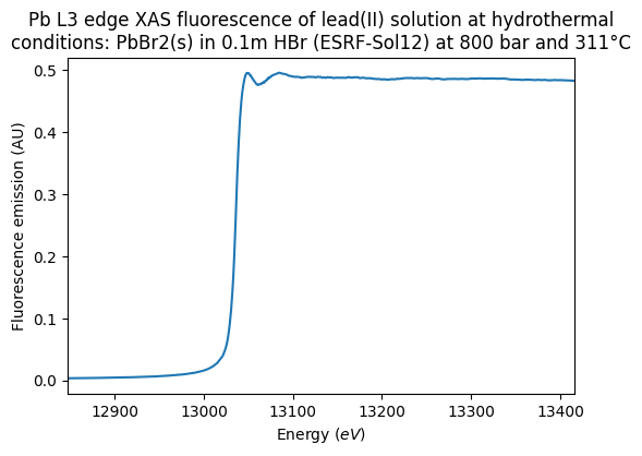 Pb L3 edge XAS fluorescence of lead(II) solution at hydrothermal conditions: PbBr2(s) in 0.1m HBr (ESRF-Sol12) at 800 bar and 311°C
