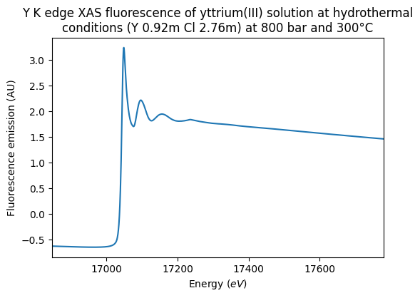 Y K edge XAS fluorescence of yttrium(III) solution at hydrothermal conditions (Y 0.92m Cl 2.76m) at 800 bar and 300°C