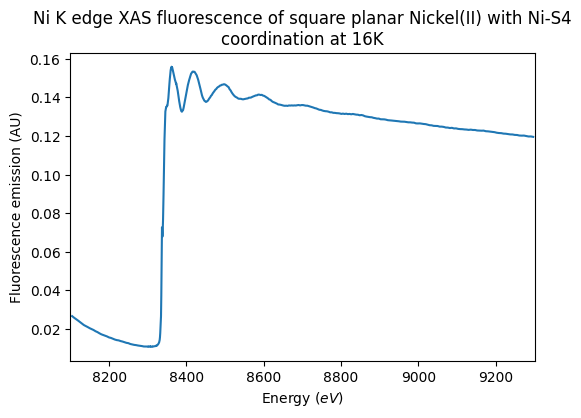 Ni K edge XAS fluorescence of square planar Nickel(II) with Ni-S4 coordination at 16K