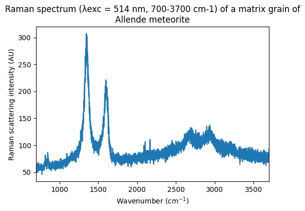 - Bonal, Lydie (2003): Raman spectra (λ = 514 nm) of matrix grains of CV meteorites. SSHADE/GhoSST (OSUG Data Center). Dataset/Spectral Data. https://doi.org/10.26302/SSHADE/EXPERIMENT_LB_20140114_001