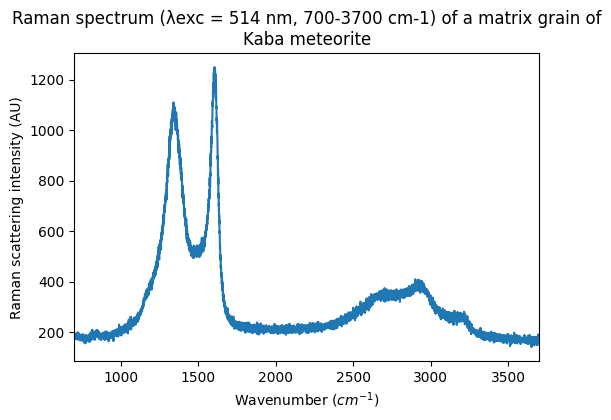 Raman spectrum (λexc = 514 nm, 700-3700 cm-1) of a matrix grain of Kaba meteorite
