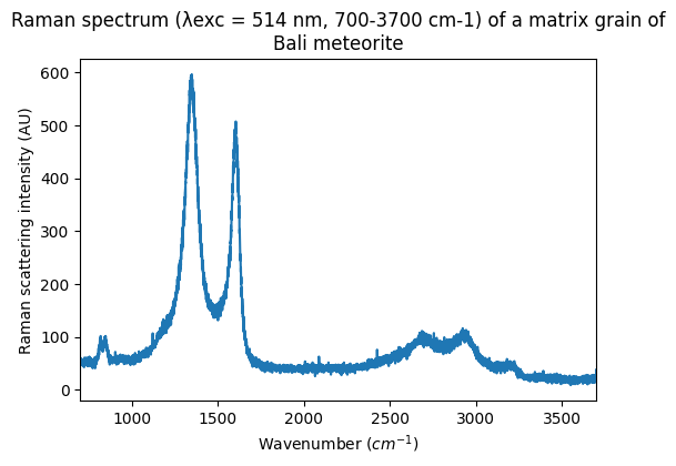 Raman spectrum (λexc = 514 nm, 700-3700 cm-1) of a matrix grain of Bali meteorite