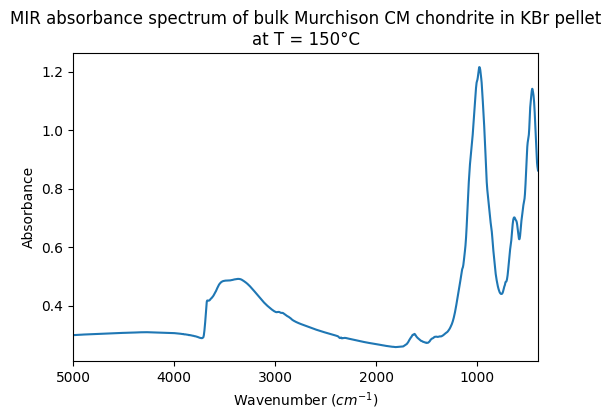 Mid-IR absorbance spectra of bulk CM chondrites in KBr pellets at ambient temperature, 150°C and 300°C