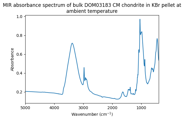 - Beck, Pierre; Garenne, Alexandre (2012): Mid-IR absorbance spectra of bulk CM chondrites in KBr pellets at ambient temperature, 150°C and 300°C. SSHADE/GhoSST (OSUG Data Center). Dataset/Spectral Data. https://doi.org/10.26302/SSHADE/EXPERIMENT_LB_20170721_001
