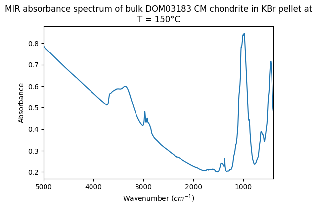 - Beck, Pierre; Garenne, Alexandre (2012): Mid-IR absorbance spectra of bulk CM chondrites in KBr pellets at ambient temperature, 150°C and 300°C. SSHADE/GhoSST (OSUG Data Center). Dataset/Spectral Data. https://doi.org/10.26302/SSHADE/EXPERIMENT_LB_20170721_001
