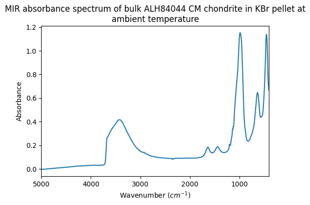 - Beck, Pierre; Garenne, Alexandre (2012): Mid-IR absorbance spectra of bulk CM chondrites in KBr pellets at ambient temperature, 150°C and 300°C. SSHADE/GhoSST (OSUG Data Center). Dataset/Spectral Data. https://doi.org/10.26302/SSHADE/EXPERIMENT_LB_20170721_001