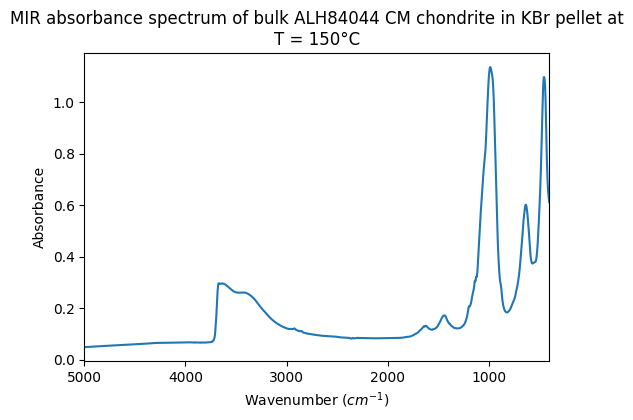 - Beck, Pierre; Garenne, Alexandre (2012): Mid-IR absorbance spectra of bulk CM chondrites in KBr pellets at ambient temperature, 150°C and 300°C. SSHADE/GhoSST (OSUG Data Center). Dataset/Spectral Data. https://doi.org/10.26302/SSHADE/EXPERIMENT_LB_20170721_001