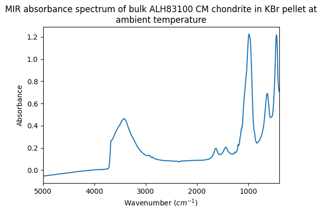 - Beck, Pierre; Garenne, Alexandre (2012): Mid-IR absorbance spectra of bulk CM chondrites in KBr pellets at ambient temperature, 150°C and 300°C. SSHADE/GhoSST (OSUG Data Center). Dataset/Spectral Data. https://doi.org/10.26302/SSHADE/EXPERIMENT_LB_20170721_001
