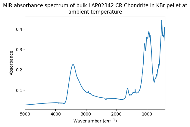 - Beck, Pierre (2012): Mid-IR absorbance spectra of bulk CR chondrites in KBr pellets at ambient temperature, 150°C and 300°C. SSHADE/GhoSST (OSUG Data Center). Dataset/Spectral Data. https://doi.org/10.26302/SSHADE/EXPERIMENT_LB_20170725_001
