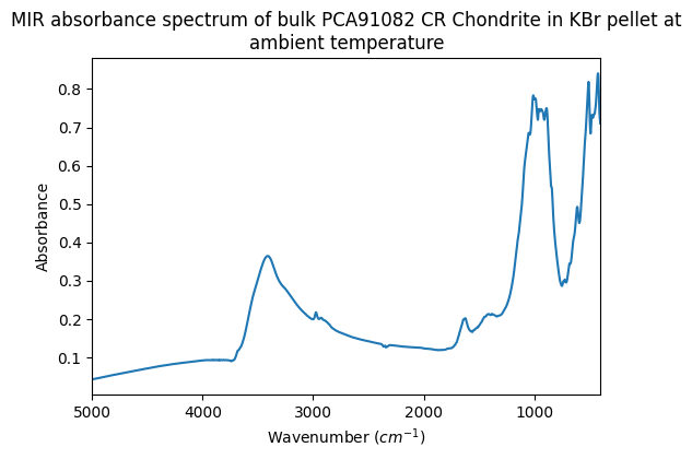- Beck, Pierre (2012): Mid-IR absorbance spectra of bulk CR chondrites in KBr pellets at ambient temperature, 150°C and 300°C. SSHADE/GhoSST (OSUG Data Center). Dataset/Spectral Data. https://doi.org/10.26302/SSHADE/EXPERIMENT_LB_20170725_001
