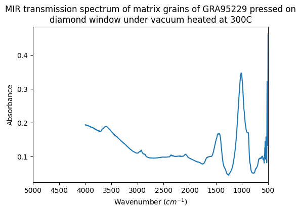 MIR transmission spectrum of matrix grains of GRA95229 pressed on diamond window under vacuum heated at 300C