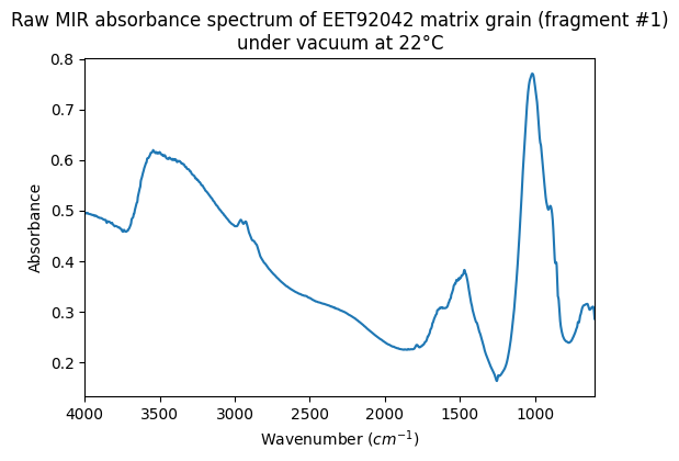 Raw MIR absorbance spectrum of EET92042 matrix grain (fragment #1) under vacuum at 22°C