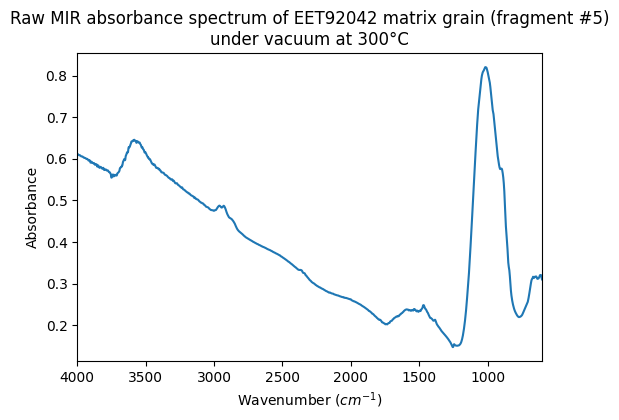 Raw MIR absorbance spectrum of EET92042 matrix grain (fragment #5) under vacuum at 300°C